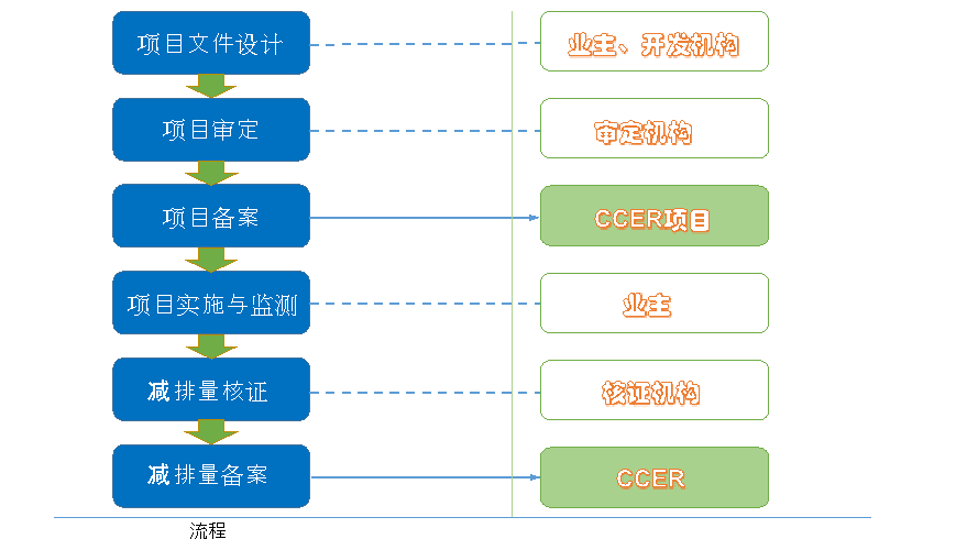 CCER项目开发很大程度上沿袭了CDM的思路,包括以下环节:1.业主按方法学准备项目设计文件(PDD)和申请材料;2.委托经备案的第三方审定机构开展项目审定;3.国家发改委对通过审查的项目批准备案;4.业主按照设计文件开展工作,按方法学要求进行监测;5.产生减排量后,委托经备案的第三方核证机构开展减排量核证;6.国家发改委对通过审查的项目减排量备案签发。 一个CCER项目从开发到最终减排量备案,最短需要8个月,从已经完成的项目来看,一般都在10个月以上。